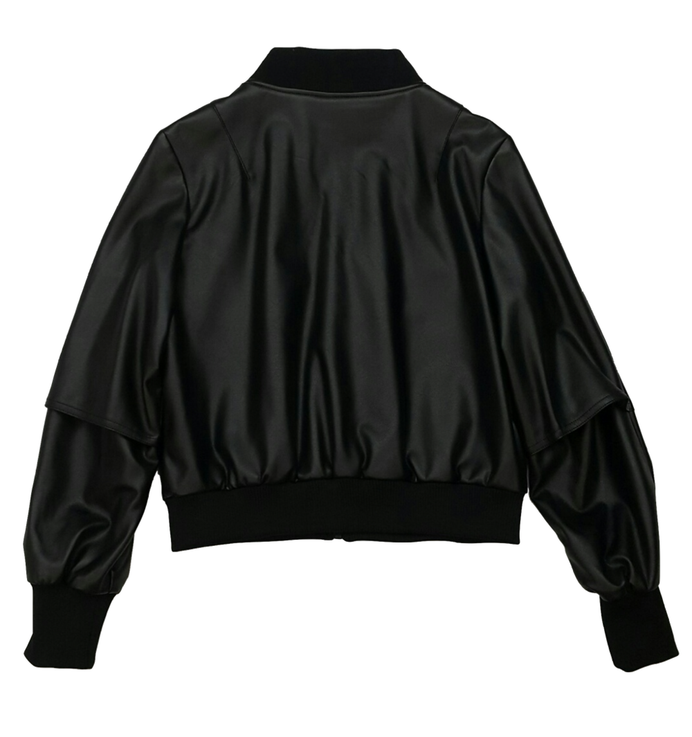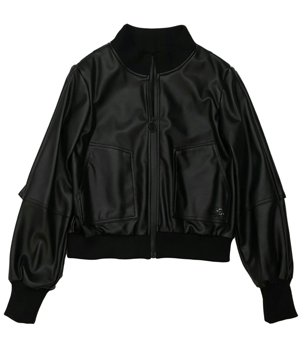 은은한 광택감과 신축성이 좋은 페이크레더소재와 레더지퍼를 사용하였으며, 적당한 크롭기장감으로 뒷팔꿈치에 패널디테일이 있는 경량점퍼입니다.